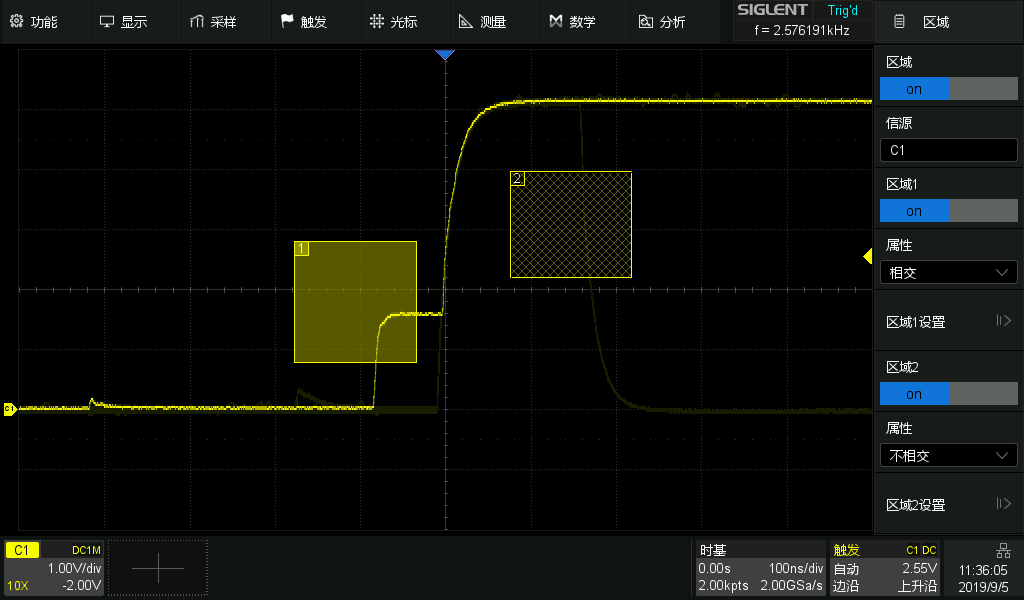 SDS3000X HD系列示波器提供豐富的觸發類型,含邊沿、間隔、超時、視頻、串行總線、區域觸發等,其中,區域觸發不同于傳統觸發,它可應用于參數特征尚不明確的偶發信號,僅需使用鼠標或者觸摸創建并定義區域即可完成信號的捕捉。總線觸發支持 I2C、SPI、CAN、CAN FD、FlexRay、I2S、MIL-STD-1553B、SENT等多種總線,提供嵌入式、汽車、計算機等串行總線的測試解決方案。