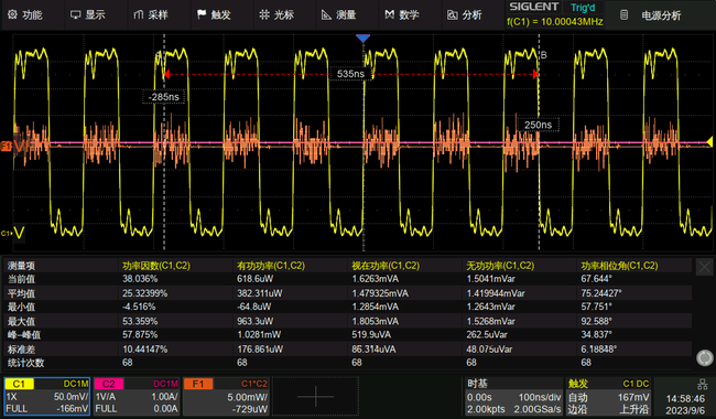 SDS3000X HD可選配電源分析功能,再搭配鼎陽的電壓探頭(如DPB5000系列)、電流探頭(CP6000系列),可以快速、準確地分析電源質量、電流諧波、浪涌電流、瞬變響應、MSO管安全作業區(SOA)等12項參數,如通過將開關損耗降至最低提高電源效率、通過統計功率器件在所有工況下瞬時參數超出安全工作區的概率評估器件工作穩定性、通過對輸入電流進行諧波分析,觀察是否存在異常諧波影響電能質量等等,可以提高電源開發人員的工作效率。