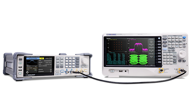 可生成常用的 ASK, FSK, PSK, QAM 等調(diào)制類型的IQ 信號(hào)。 采用創(chuàng)新的重采樣技術(shù), 可以在250 Symb/s ~ 500 MSymb/s 范圍內(nèi)的任意符號(hào)率下獲得優(yōu)異的EVM 性能。內(nèi)建的數(shù)字正交調(diào)制器可將IQ 信號(hào)的載波調(diào)制到1 GHz 范圍內(nèi)的任意頻點(diǎn);可使用上位機(jī)軟件EasyIQ 來(lái)生成各種類型的IQ 信號(hào)。