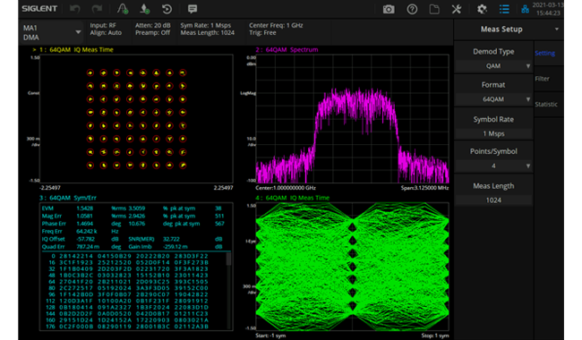 提供 AM/FM 模擬信號,ASK/FSK/PSK/MSK/QAM 數(shù)字信號分析和 EVM 計算。