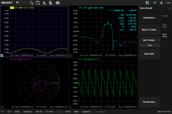 除開外觀設計,其先進的用戶界面,配合上12.1英寸超大觸摸屏與外接的鼠標和鍵盤,讓工程師能更快的添加或刪除窗口,通道和跡線。SNA5000A支持在多個窗口下,添加多條跡線進行S參數測量。并且測量結果,可以多種數據格式顯示,如 Log Mag,Lin Mag,Phase,Delay,Smith,SWR,Polar等,可以方便快捷地分析被測物的傳輸系數,反射系數,駐波比,阻抗匹配,相位,延時等參數。