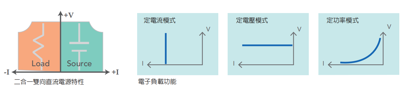 隨著電動汽車的普及,因此OBC車載充電器朝V2G(Vehicle to Grid)、V2L(Vehicle to Load)及V2H(Vehicle to Home)通過雙向充放電與電網(wǎng)進(jìn)行運(yùn)行管理。62000D系列雙向直流電源亦提供純電子負(fù)載模式,有定電壓(CV)/定電流(CC)/定功率(CP)模式,提供于車載充電器研發(fā)及測試時(shí),模擬電池充電行為,僅需一臺62000D即可滿足雙向充電器的充電及放電測試,取代傳統(tǒng)方式需要一臺直流電源搭配一臺電子負(fù)載兩種設(shè)備。