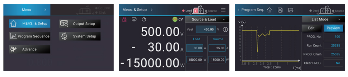 62000D雙向直流電源具有新一代人機(jī)控制界面,搭配直觀觸控屏幕并設(shè)計(jì)友善的使用者界面,使用者可輕松的以類似操作智慧手機(jī)行為習(xí)慣來操作儀器,透過觸控屏幕內(nèi)icon可完成所有電壓/電流的設(shè)定及測量、Program Sequence控制設(shè)定并預(yù)覽輸出波形等,具智慧及便捷的使用者界面。