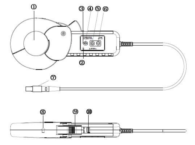 8 電流方向標記:從鉗口沿著該方向流過電流,輸出為正,否則為負。