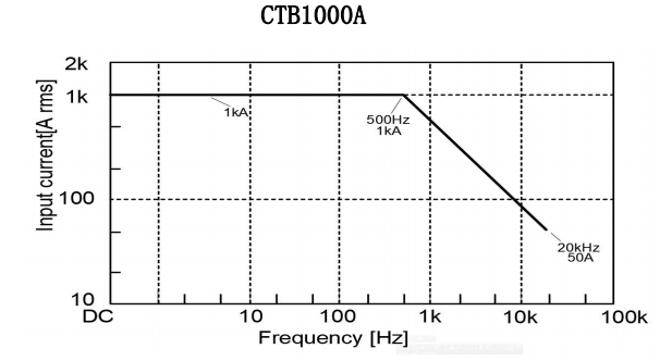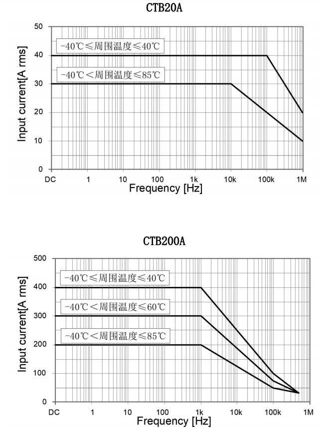 持續最大輸入范圍會因測定電流的頻率不同而不同。超過最大電流連續使用會導致探頭燒毀。