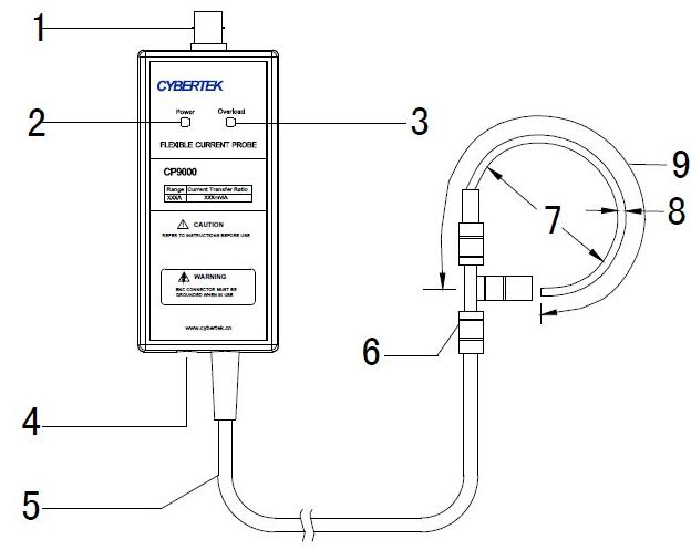 CP9000 系列探頭環外徑典型值 3.8mm,耐壓值高達 2kVpk,感應環在狹小空間可以自由穿梭,適合大電流測量場合。