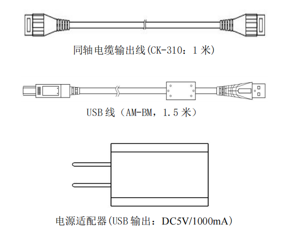 4)USB 5V 供電接口:標準 USB(B 型)接口,標配 USB 供電連接線。