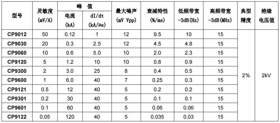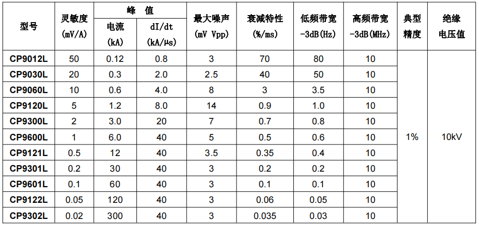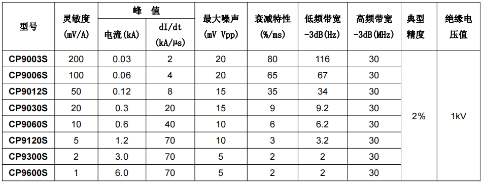 CP9000L 系列探頭環外徑典型值 8mm,耐壓值高達 10kVpk,非常適合大電流,大功率場合。