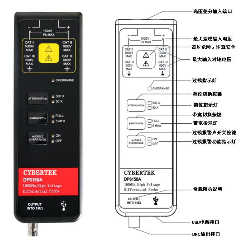 DP6000 系列高壓差分探頭是具有浮地測量功能的高壓差分探頭。其帶寬最高達到 200MHz,滿足了大部分測試系統(tǒng)的需要;豐富的量程可供選擇,其差動測量電壓范圍滿足大部分測試電路的要求;用戶可進入測試模式,調(diào)整偏置電壓,探頭長期使用后若出現(xiàn)失調(diào)現(xiàn)象,用戶可進入該模式,調(diào)整偏置,實現(xiàn)歸零;電子輕觸式按鍵,使得使用壽命更長;具有 5MHz 帶寬限制功能選擇,5MHz頻率帶寬滿足大部分開關(guān)電源中 FETs 的開關(guān)頻率的測量,并可以濾除更高頻率的噪聲和干擾;帶有聲光報警功能,且可手動關(guān)閉聲音報警功能,更具有人性化設(shè)計;USB 供電接口,使用更加方便靈活;探頭配備標(biāo)準(zhǔn)的 BNC 輸出接口,可與任何廠家的示波器配合使用(要求示波器的輸入阻抗設(shè)置為 1MΩ;當(dāng)選擇 50Ω時,衰減倍數(shù)會多衰減一倍),測量被測電路波形;自動保存功能,防止掉電后用戶重復(fù)操作。探頭具備良好的共模噪聲抑制能力,輸入端具有較高的輸入阻抗和較低電容,可以準(zhǔn)確高速地測量差分電壓信號。可廣泛用于開關(guān)電源﹑變頻器﹑電子鎮(zhèn)流器﹑變頻家電和其它電氣功率裝置等的研發(fā)﹑調(diào)試或檢修工作中。