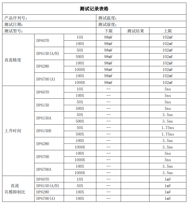 以 DP6150A 為例,不同產(chǎn)品,電壓﹑量程﹑帶寬會有所不同