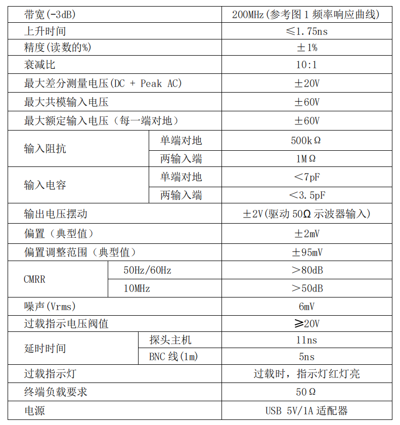 DP6020 探頭是具有浮地測量功能的低壓差分探頭。測量電壓±20V(DC+Pk),其帶寬最高達200MHz,提供 10:1 的衰減設置,具有 1 MΩ 的輸入阻抗,以及 3.5 pF 的低輸入電容,可以最大程度地降低電路負載,具有過壓報警功能,可以兼容任何具有 50 Ω BNC 輸入的示波器,并可以通過示波器或計算機上的 USB 端口供電。在各種應用中得到廣泛使用,可以為當今的高速功率測量、車載總線測量和數字系統設計提供出色的通用差分信號測量。