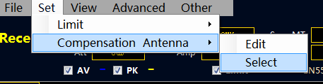 調用補償曲線時點擊“Set-Compensation Antenna-Select”,選擇所需的補償曲線。然后點選“Use Compensation”程序將應用當前補償曲線,并在表格上顯示補償的值。點擊 OK 確認。