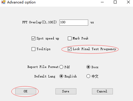 Lock Final Test Frequency:頻率值鎖定(在鎖定終測頻率功能介紹中有詳細介紹)。