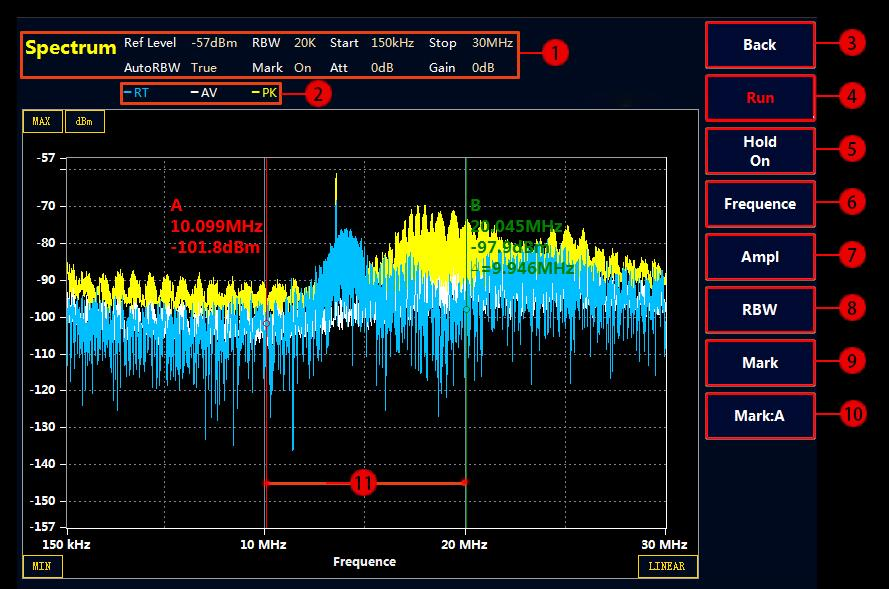 最大值保持掃描:點擊 Scan,會執行連續掃描操作,并保持最大值顯示,通過 Stop 按鍵停止掃描。