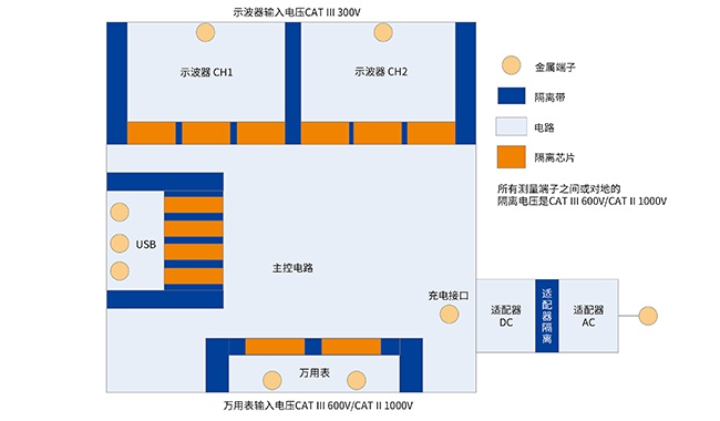 全隔離設計,達到CAT III 測量類別