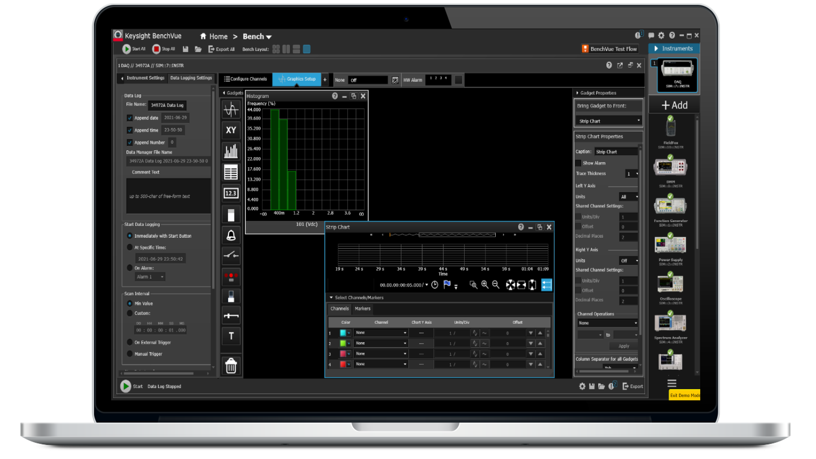 了解 PathWave BenchVue 軟件如何快速配置您的 DAQ970A,控制多臺儀器和自動執行測試序列,而且無需您精通儀器操作便可立即執行深入分析。