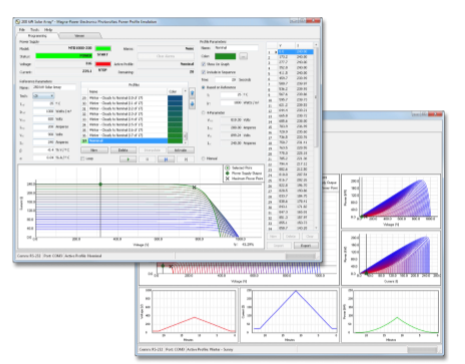 光伏分布模擬(PPPE)軟件根據用戶定義的參數自動計算太陽能陣列電壓和電流分布。這些分布信息將按順序發送至麥格納電子設備公司的電源, 可模擬所定義的特性。用戶可在給定時間段內定義無*待模擬和排序的分布信息。