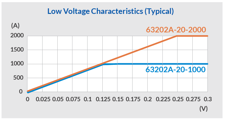 低壓大電流電子負載,具有卓越的低電壓特性,特別是63202A-20-2000型號,其負載端最小操作電壓可達0.25V,在此電壓下提供高達2,000A的最大額定電流。需特別注意若受線材壓降影響,導(dǎo)致負載端低于0.25V,則無法提供2,000A之電流。此外,即使在電壓低于0.25V至0V區(qū)間內(nèi),該設(shè)備仍能拉載電流,展現(xiàn)出穩(wěn)定的性能,可參考低電壓操作特性V-I曲線圖*。