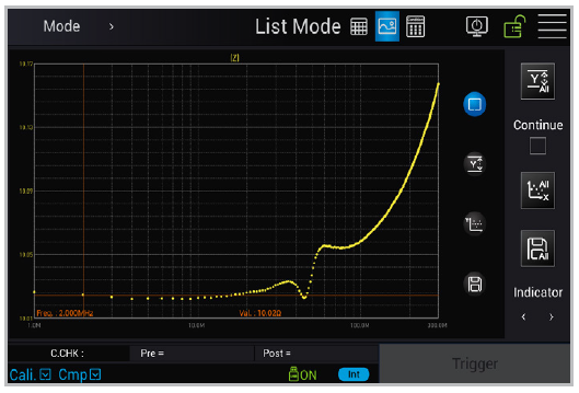 涵蓋量測項目Z, θz, Y, θy, R, X, G, B, Ls, Lp, Cs, Cp, Rs, Rp, D , Q 等各種被動元件測試所需的主、副參數(shù)。 100kHz~300MHz的寬廣測試頻率范圍,采用RF式電流電壓轉(zhuǎn)換技術(shù),其優(yōu)于網(wǎng)路分析儀技術(shù)的阻抗量測范圍,高于自動平衡橋技術(shù)的頻率量測范圍,適合研發(fā)與品保單位分析被動元件于不同頻率下的特性。此外,搭載超低雜訊、低諧波失真訊號產(chǎn)生模組,賦予量測訊號高品質(zhì)純凈度,進而提升阻抗測試的準確性。