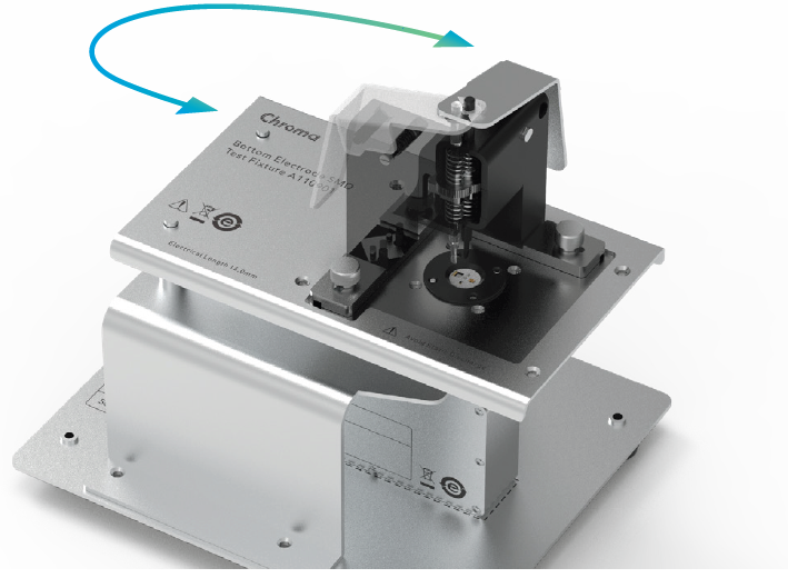 SMD尺寸細微且多元,需要極度精密的特殊材料提供限位,但若更換尺寸皆需重新組裝限位墊片,不僅耗時且容易損耗昂貴的組件與限位墊片。符合多種小型的SMD測試治具,采用改進的下壓方式,可旋轉(zhuǎn)90度并只需要三個步驟來更換被測物(實際測試約40秒),能替用戶減少更換被測物時間、加快測試速度、免除反覆拆裝限位墊片,進而減少損耗與維護費用。
