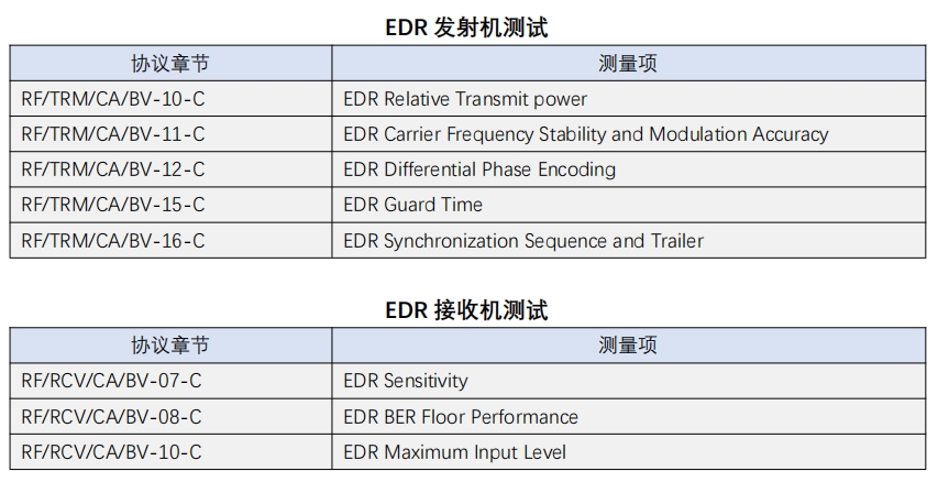 ITC-RT650 提供 EDR 射頻測試功能,支持如下測量項。