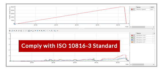 可利用監(jiān)控模塊量測(cè)動(dòng)力計(jì)端電機(jī)與軸承箱以及DUT系統(tǒng),監(jiān)測(cè)和記錄測(cè)試過(guò)程中產(chǎn)生的振動(dòng),如果振動(dòng)超過(guò)安全范圍,可以及時(shí)發(fā)出警報(bào)或停止測(cè)試,從而確保測(cè)試過(guò)程的安全和穩(wěn)定性。并可同步確保產(chǎn)品滿足特定的振動(dòng)標(biāo)準(zhǔn)和規(guī)范。