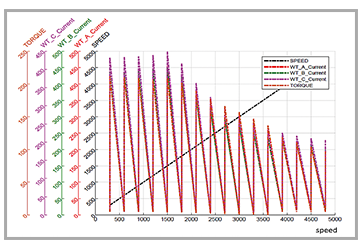 具備載入設(shè)定工況運(yùn)轉(zhuǎn)之功能,透過(guò)匯入.CSV檔案,可程式設(shè)定測(cè)試電壓值、電流保護(hù)值、電機(jī)(負(fù)載端)轉(zhuǎn)速命令、電機(jī)(待測(cè)物端)轉(zhuǎn)矩命令等控制參數(shù)對(duì)應(yīng)時(shí)間之工況。測(cè)試報(bào)告支援圖表輸出功能,可產(chǎn)生產(chǎn)品名稱、測(cè)試日期、測(cè)試參數(shù)等資訊。可針對(duì)用戶所選擇的各項(xiàng)測(cè)試資料,產(chǎn)出時(shí)間與不同參數(shù)相對(duì)應(yīng)的曲線圖及電機(jī)與電機(jī)驅(qū)動(dòng)器效率云圖。