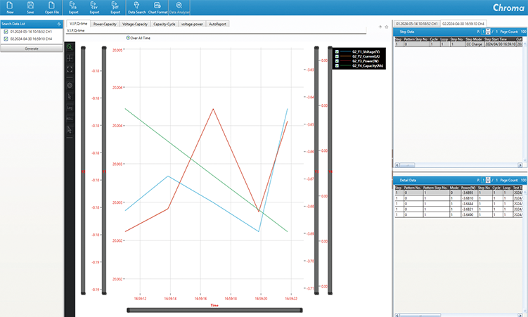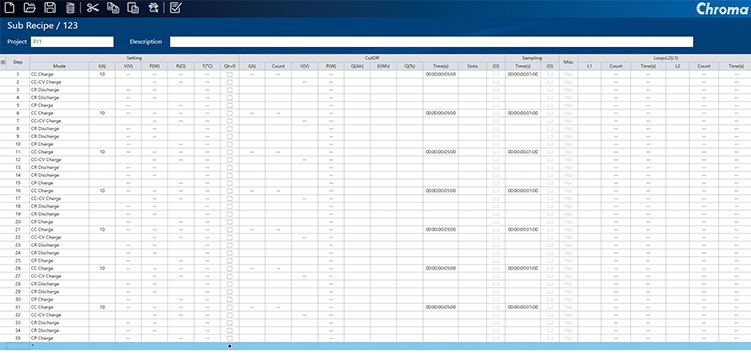 Chroma 17020C系統(tǒng)搭配「Battery Pro-X」軟件,具備彈性的編程功能,測試工步的編輯與執(zhí)行接口直觀且簡便。該系統(tǒng)提供圖形化測試流程創(chuàng)建、預(yù)定義測試模板、實(shí)時(shí)數(shù)據(jù)監(jiān)控以及與外部設(shè)備的無縫整合等功能,顯著提升了測試配置的效率與準(zhǔn)確性,滿足各類復(fù)雜測試需求。